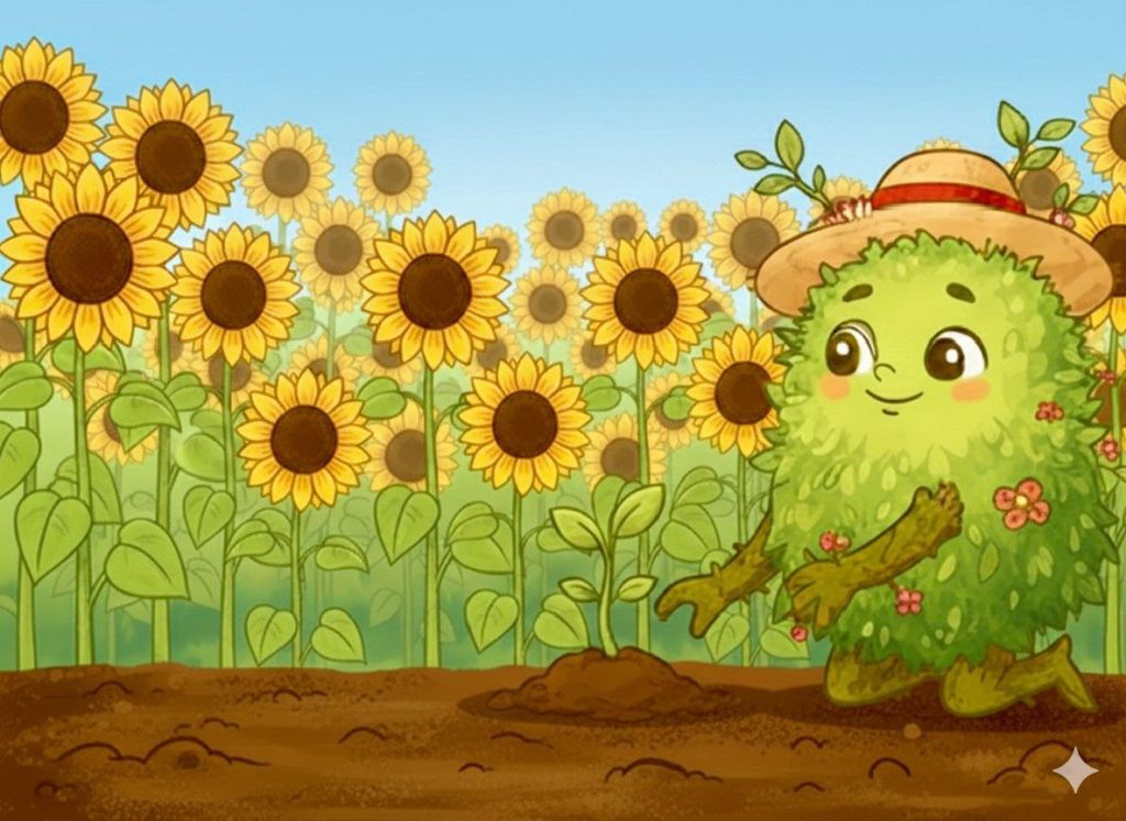 Он внимательно наблюдает за тем, как растут растения, и помогает им становиться крепче и здоровее.