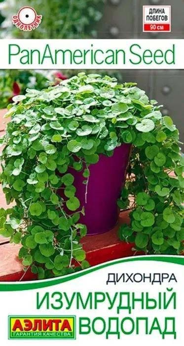 Дихондра Изумрудный водопад — это сорт от американской компании PanAmerican Seed, который будет отличным дополнением любых цветочных композиций и подвесных кашпо. Длина побегов до 90 см. Листочки дихондры Изумрудный водопад (Emerald Falls) расположены ближе к стеблю, поэтому сорт образует более плотный кустик, чем сорт Серебристый водопад (Silver Falls).