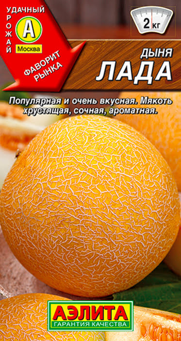 Дыня Лада — это среднеспелый сорт. Созревание наступает на 85-95 день. Ароматные плоды, массой 1,5-2 кг с очень вкусной и нежной мякотью. Помимо этих уникальных качеств, обладает следующими ценностями: быстро растет, не поражается болезнями, транспортабельна. Благодаря повышенному содержанию сахаров, из нее получаются изумительные восточные лакомства, цукаты, оригинальные маринады.